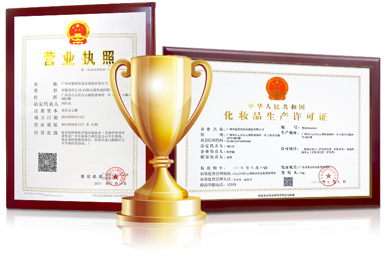 • 具有國家權(quán)威認(rèn)證的化妝品生產(chǎn)資質(zhì)